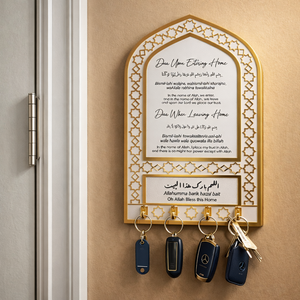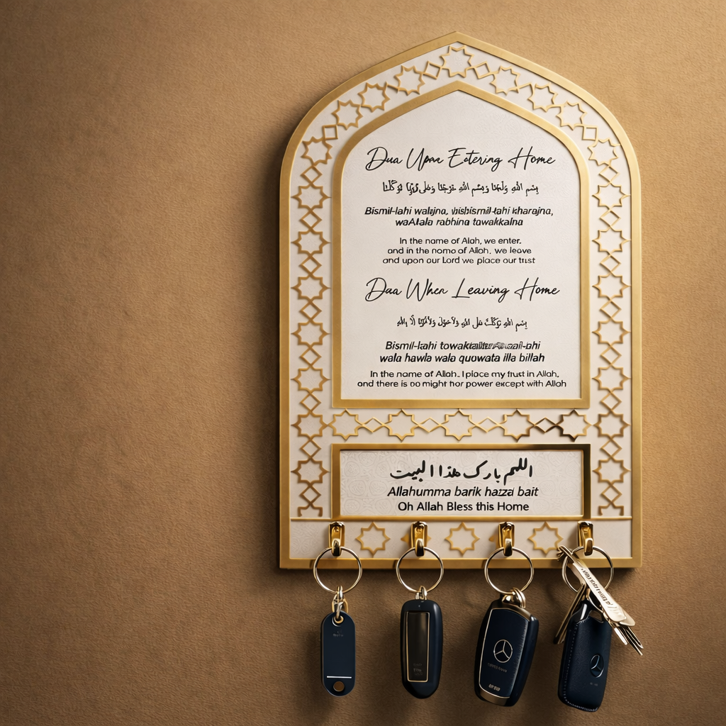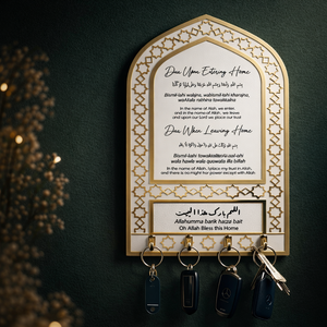 Acrylic Islamic Key Holder – Dua for Entering & Leaving Home | Elegant Islamic Wall Decor
