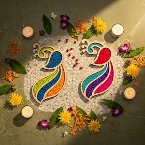 We offer a variety of traditional & modern rangoli designs in different sizes (small 12, medium 18, large 24, Extra Large 48). You can choose based on your space and décor theme.