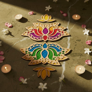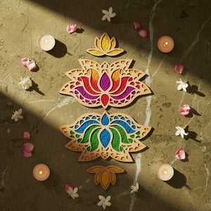 Lotus Rangavalli Diwali Combo (2 Lotus Rangoli, 2 Kamal Borders, 5 Colours pack)