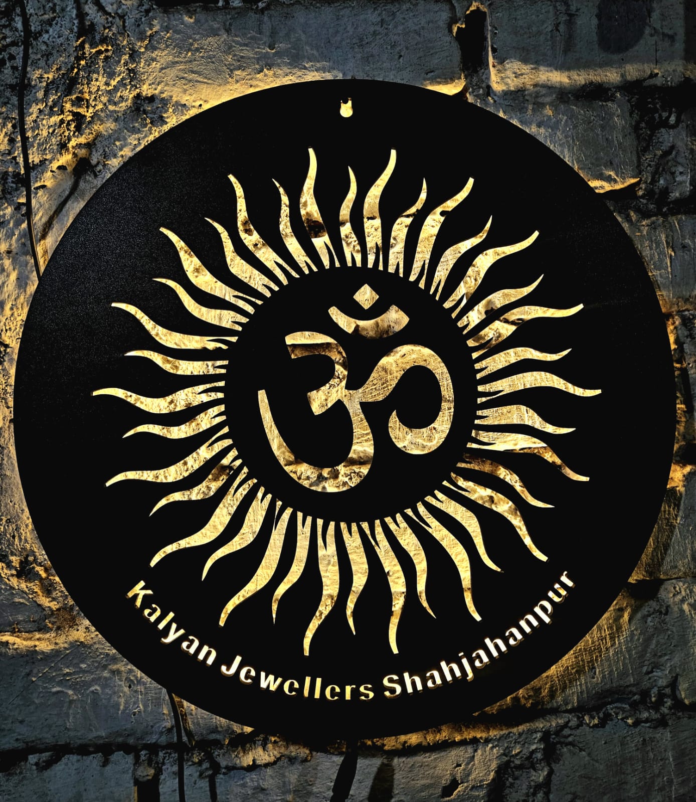 Handcrafted Luxury: Premium pine wood design featuring a divine OM with Surya Agni motif.