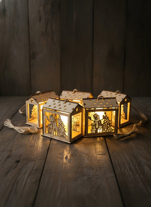 Yes! Each miniature house features an internal LED light that emits a warm, cozy glow from its windows, creating a magical ambiance.