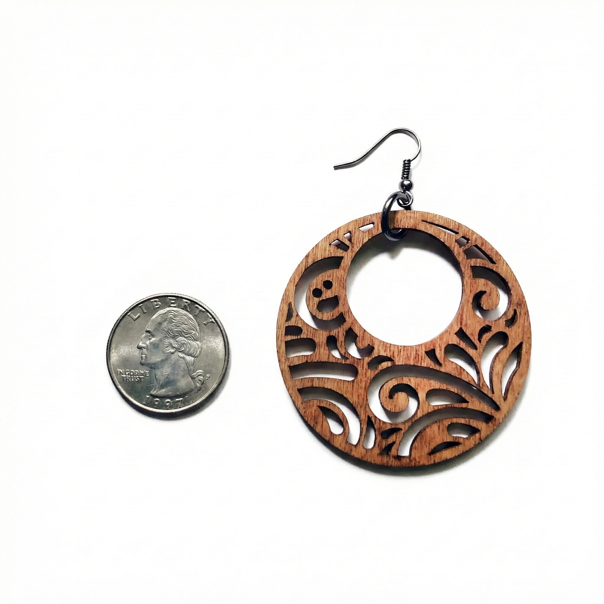 These lightweight, 2" Dangle earrings feature a beautifully cut-out paisley design cut on natural birch wood. Finished with cadmium, nickel, and lead-free gunmetal alloy fish hooks. They're the perfect mix of boho charm and everyday style.