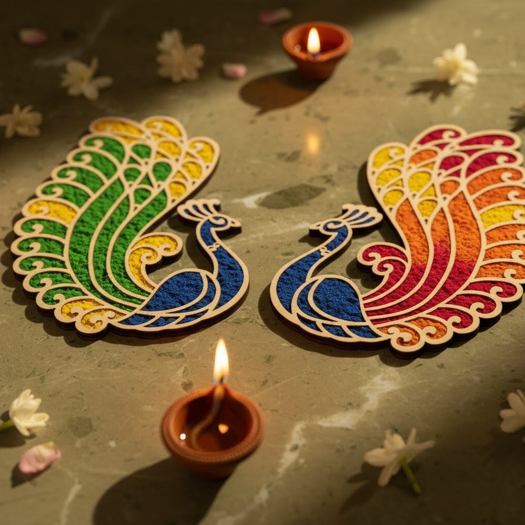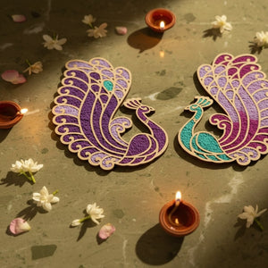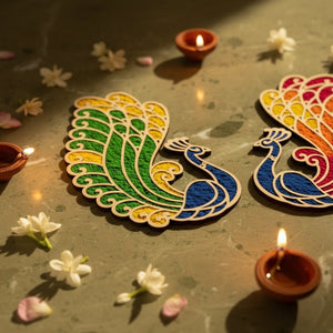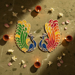 Peacock Rangavalli Diwali Combo (2 Peacock Rangoli 24 inch, 5 Colours pack)