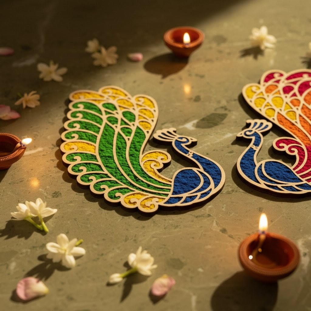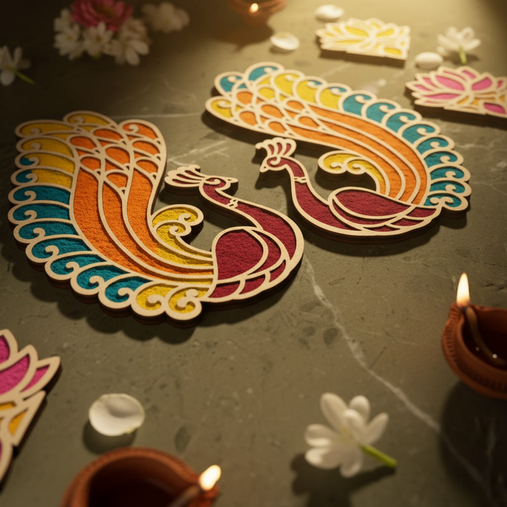 Our Explore Rangoli collection is crafted from premium, durable Pine wood, making it reusable, eco-friendly, and a safer alternative to plastic or foam designs.