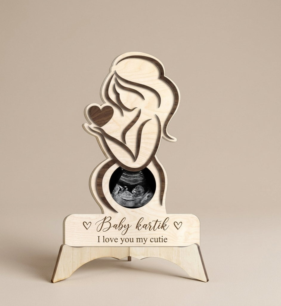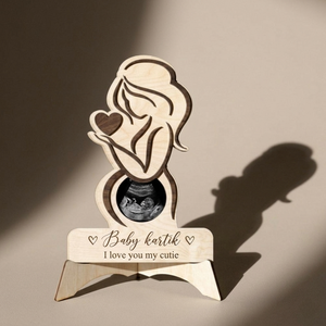 Celebrate the joy of your growing family with this Personalized Wooden Ultrasound Photo Holder! Perfect for baby announcements, sonogram keepsakes, and nursery decor, this elegant wooden frame features a stylized silhouette of a mother holding a heart, with a dedicated space for your baby’s ultrasound photo. Customize it with your baby’s name and a sweet message for a heartfelt, unique gift that will be treasured forever.