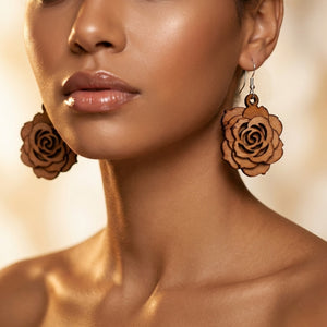 These lightweight, 2" Dangle earrings feature a beautifully cut-out 3d Rose design cut on natural birch wood. Finished with cadmium, nickel, and lead-free gunmetal alloy fish hooks. They're the perfect mix of boho charm and everyday style.