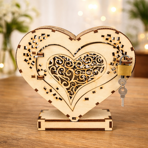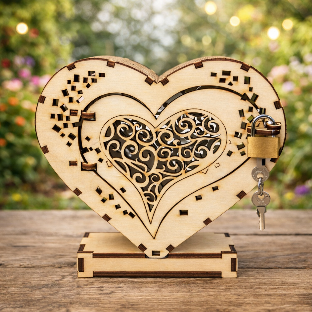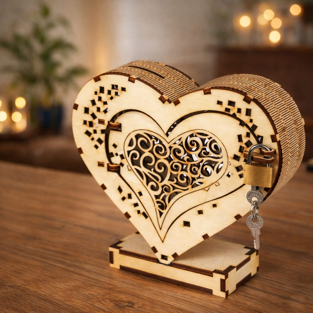 Wooden Heart Piggybank Valentine gift with a Padlock
