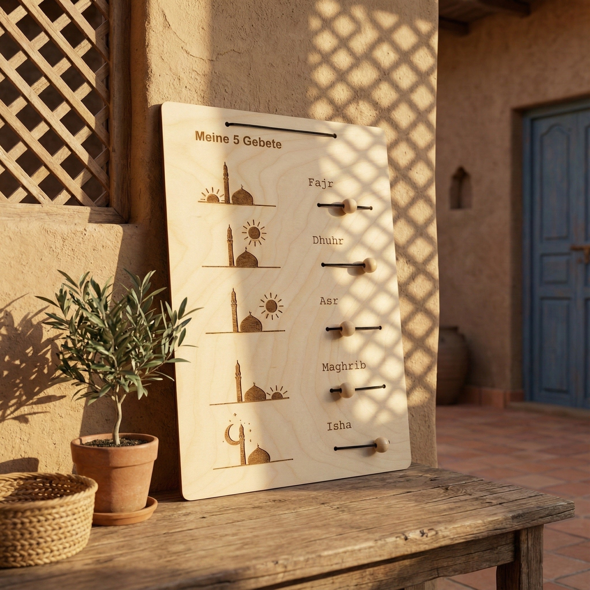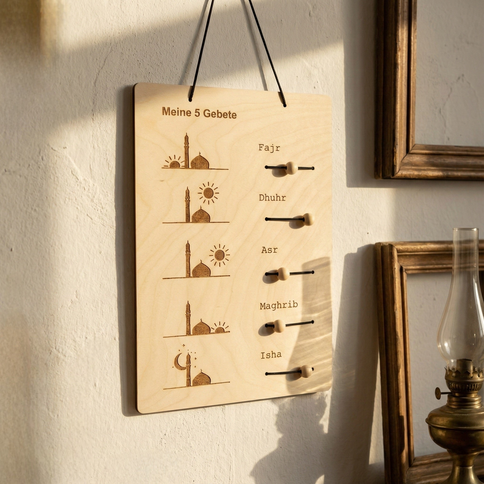Wooden Islamic Prayer Tracker Wall Hanging – Meine 5 Gebete